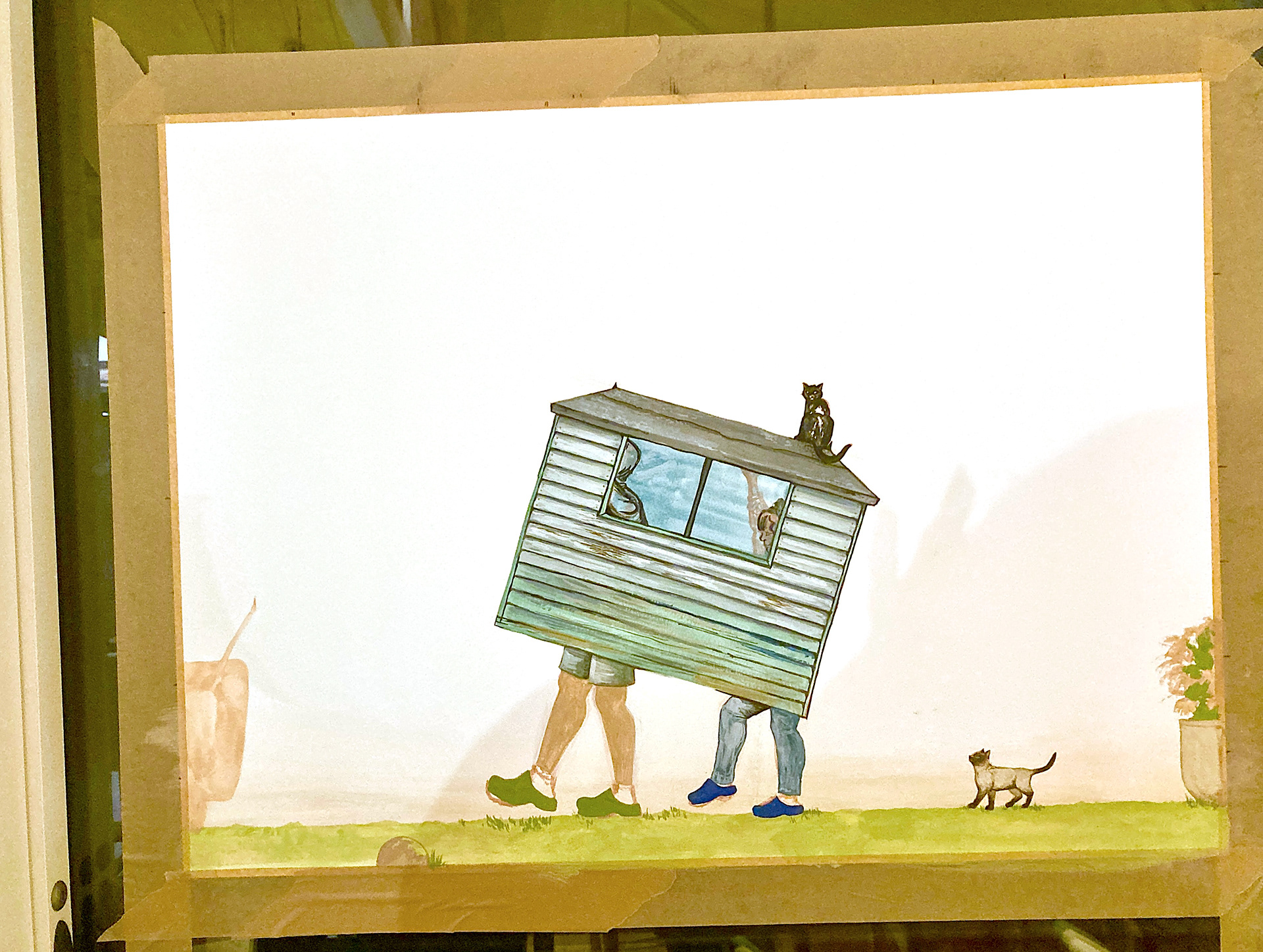 This was a commissioned piece for a couple to commemorate moving into their first house together, enjoy the croc's with socks.
