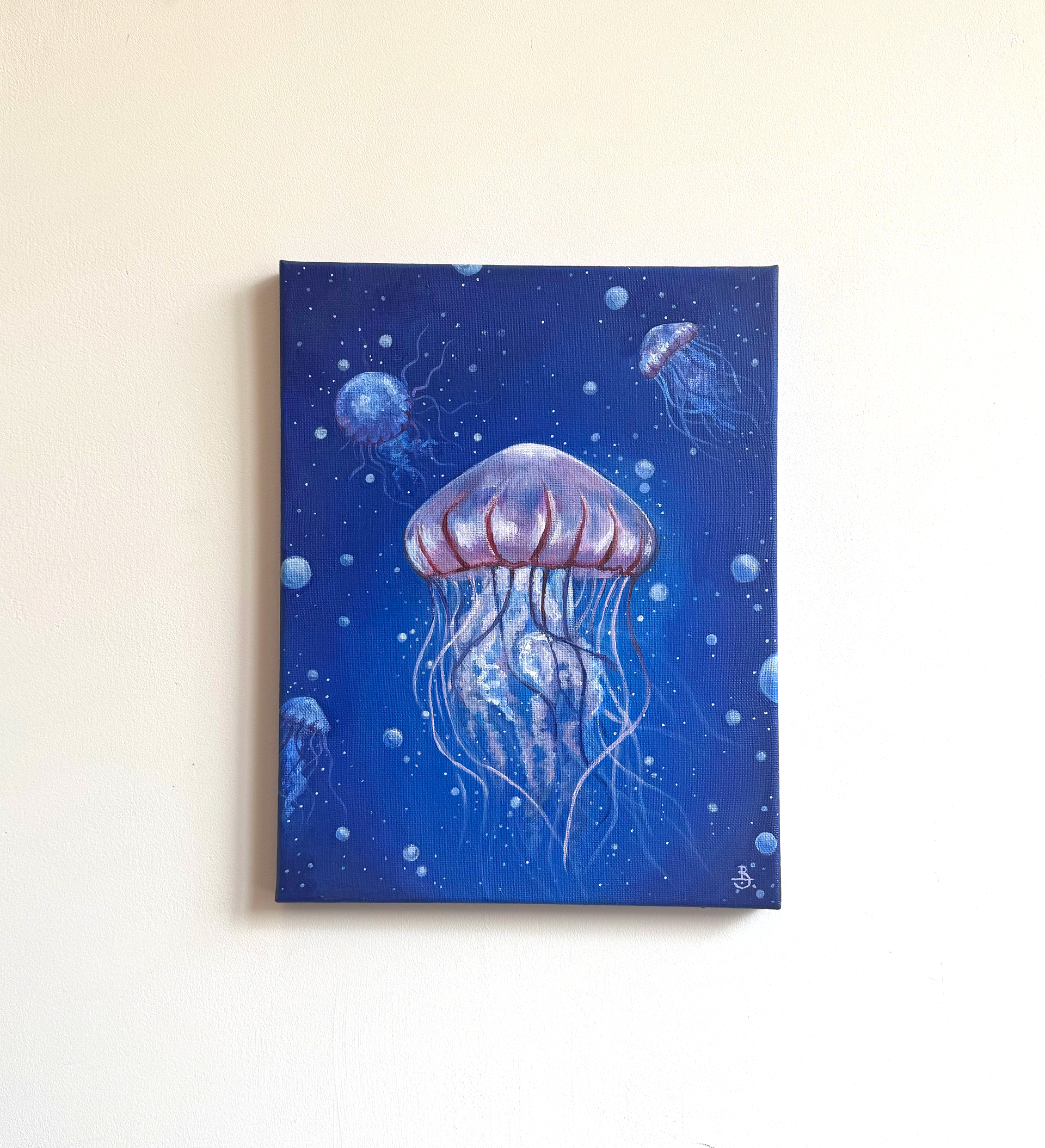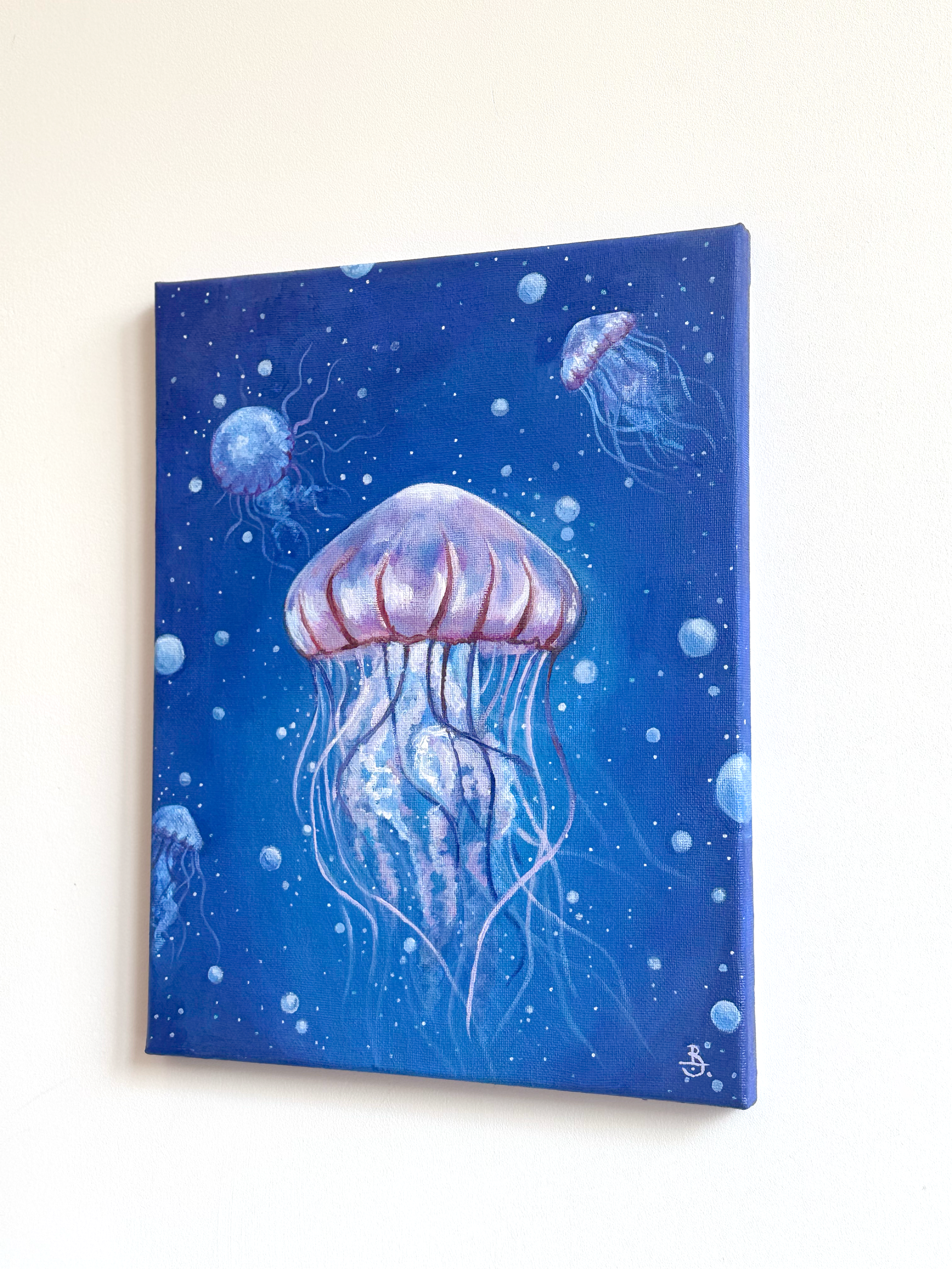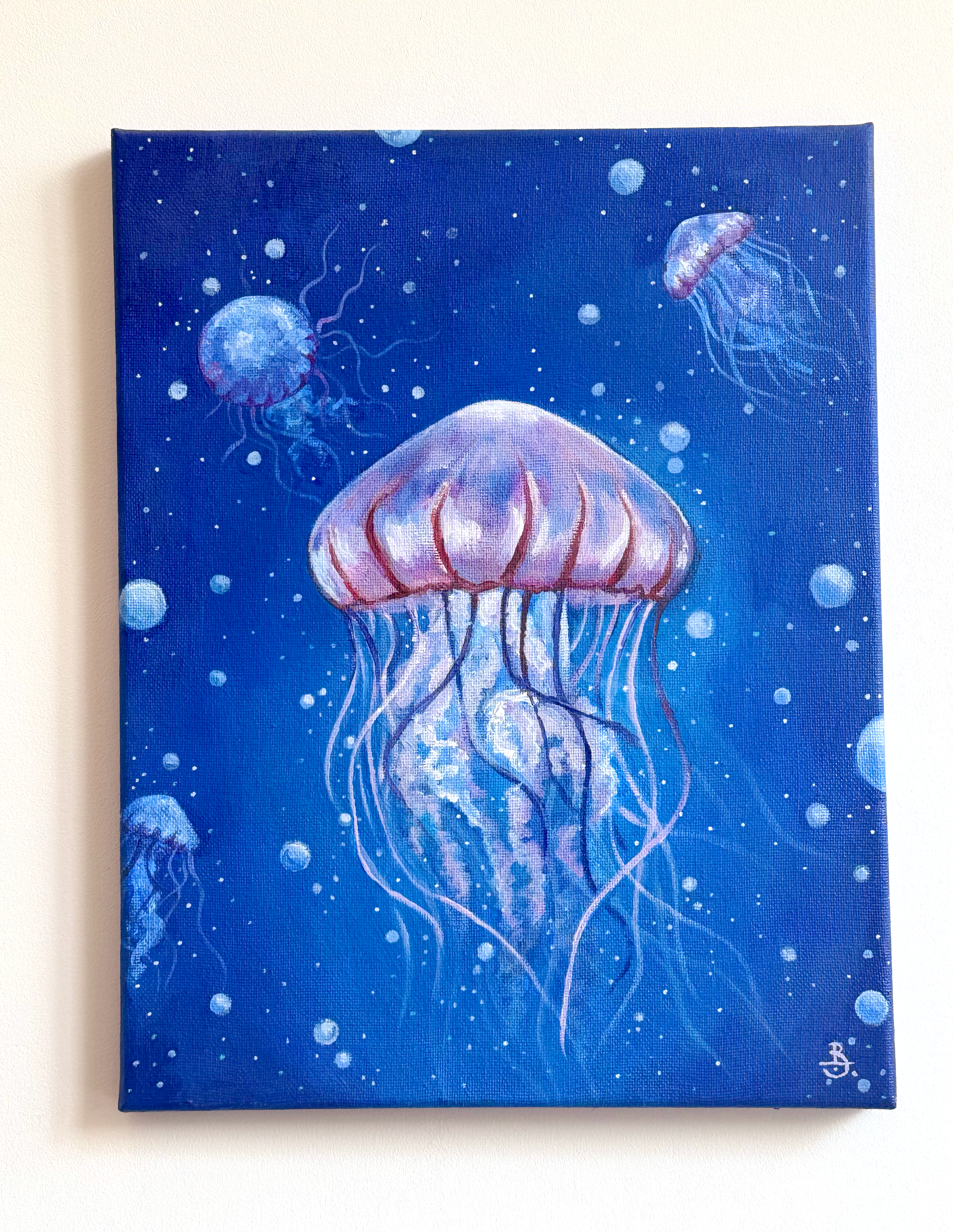 A jellyfish painting in. Acrylic on canvas.