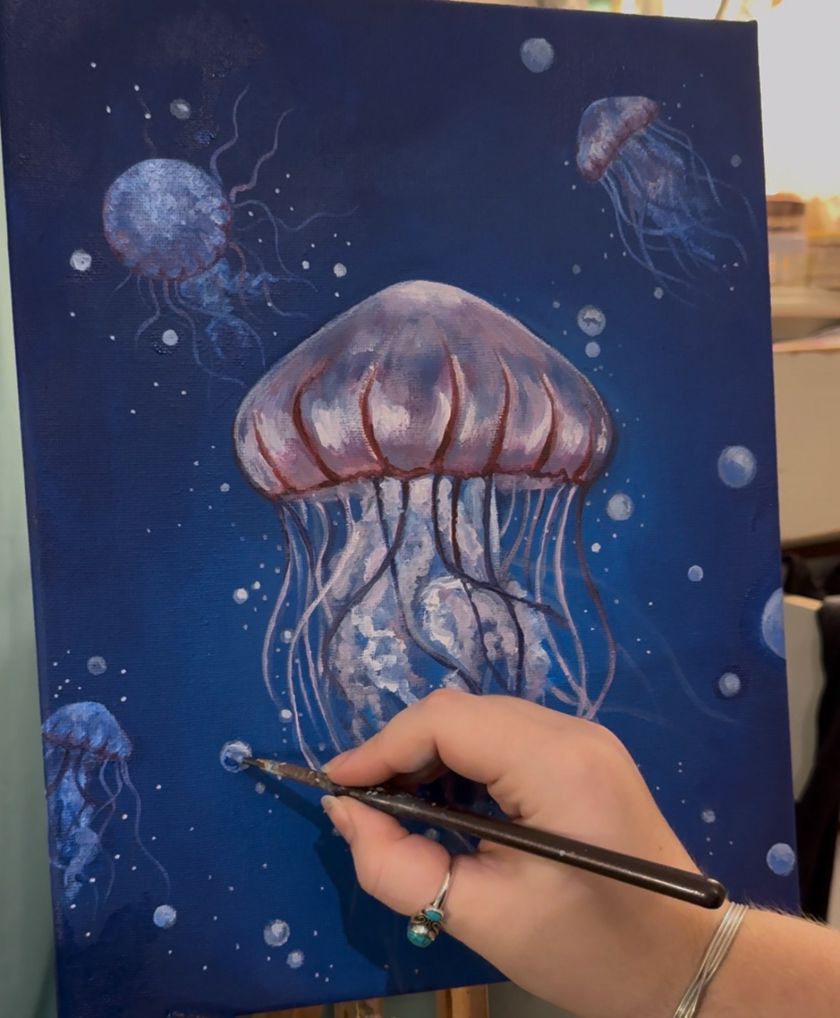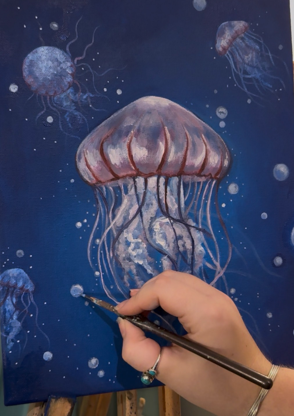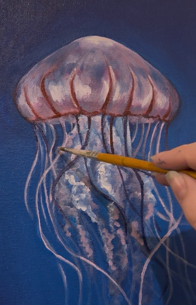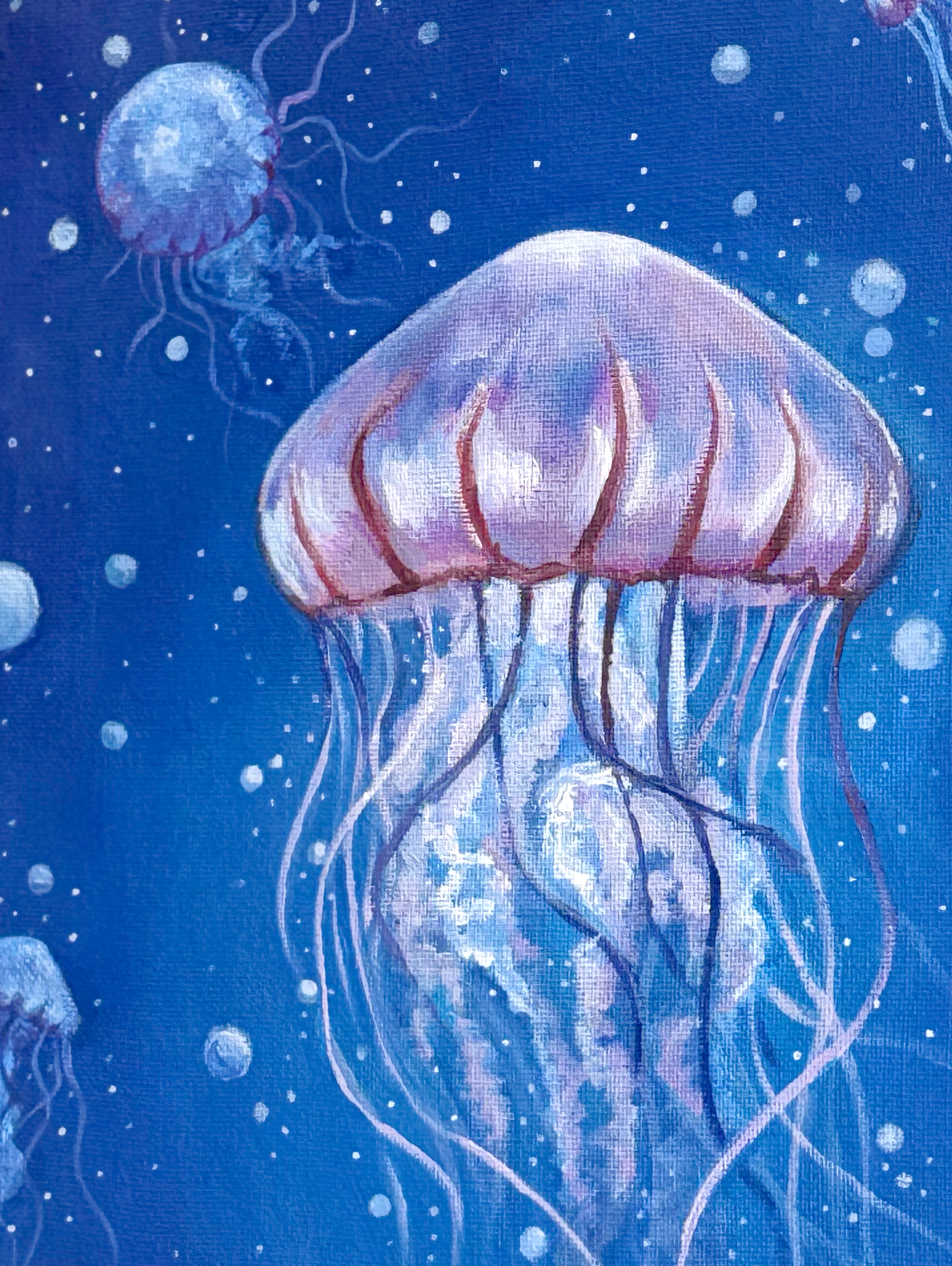 A jellyfish painting in. Acrylic on canvas.
