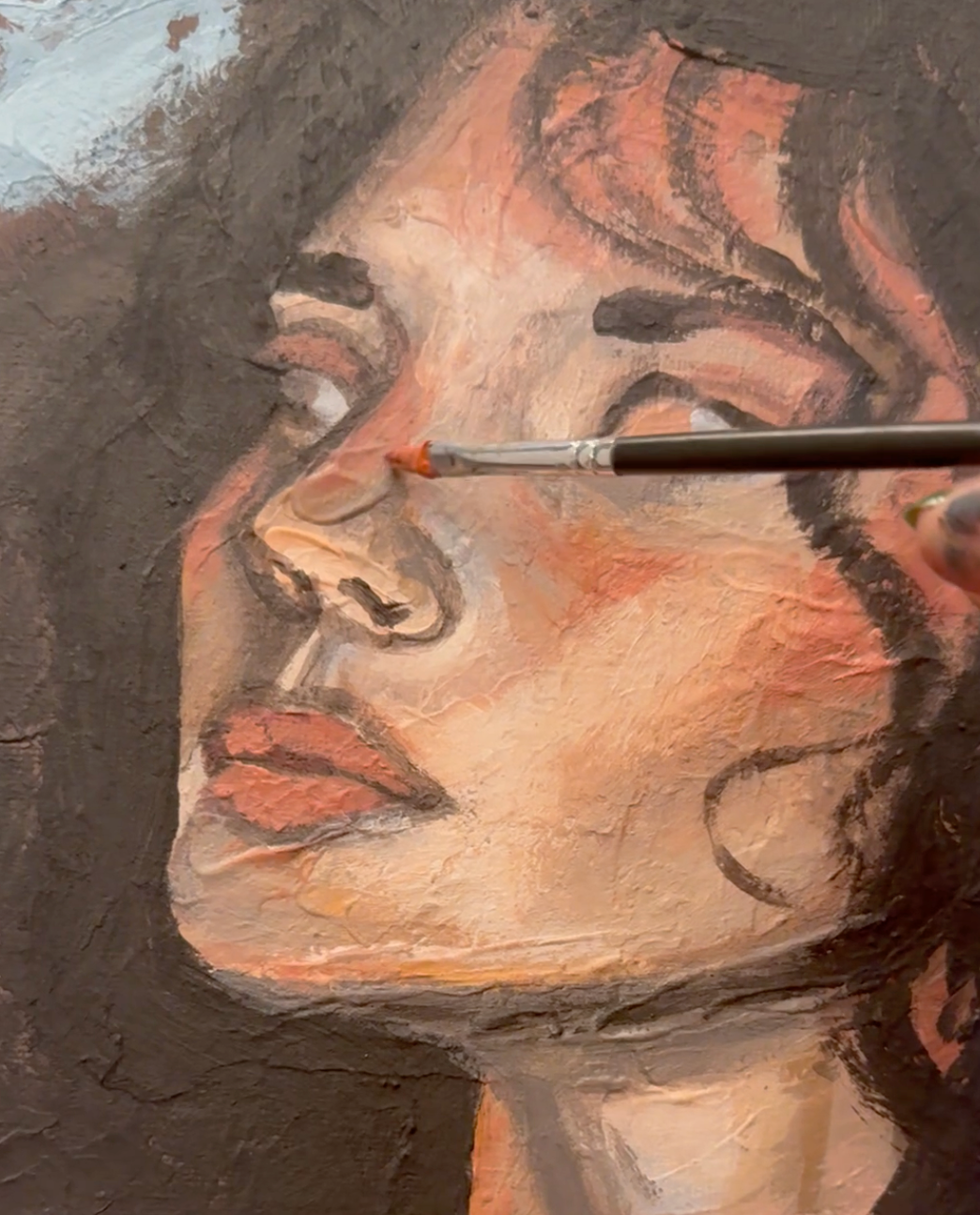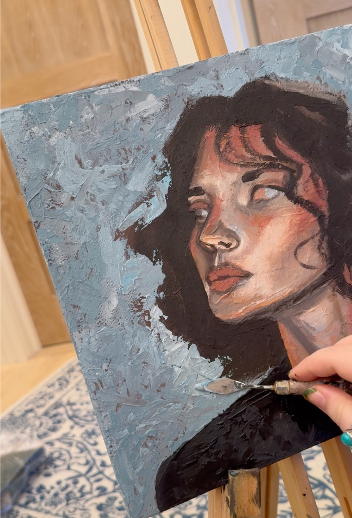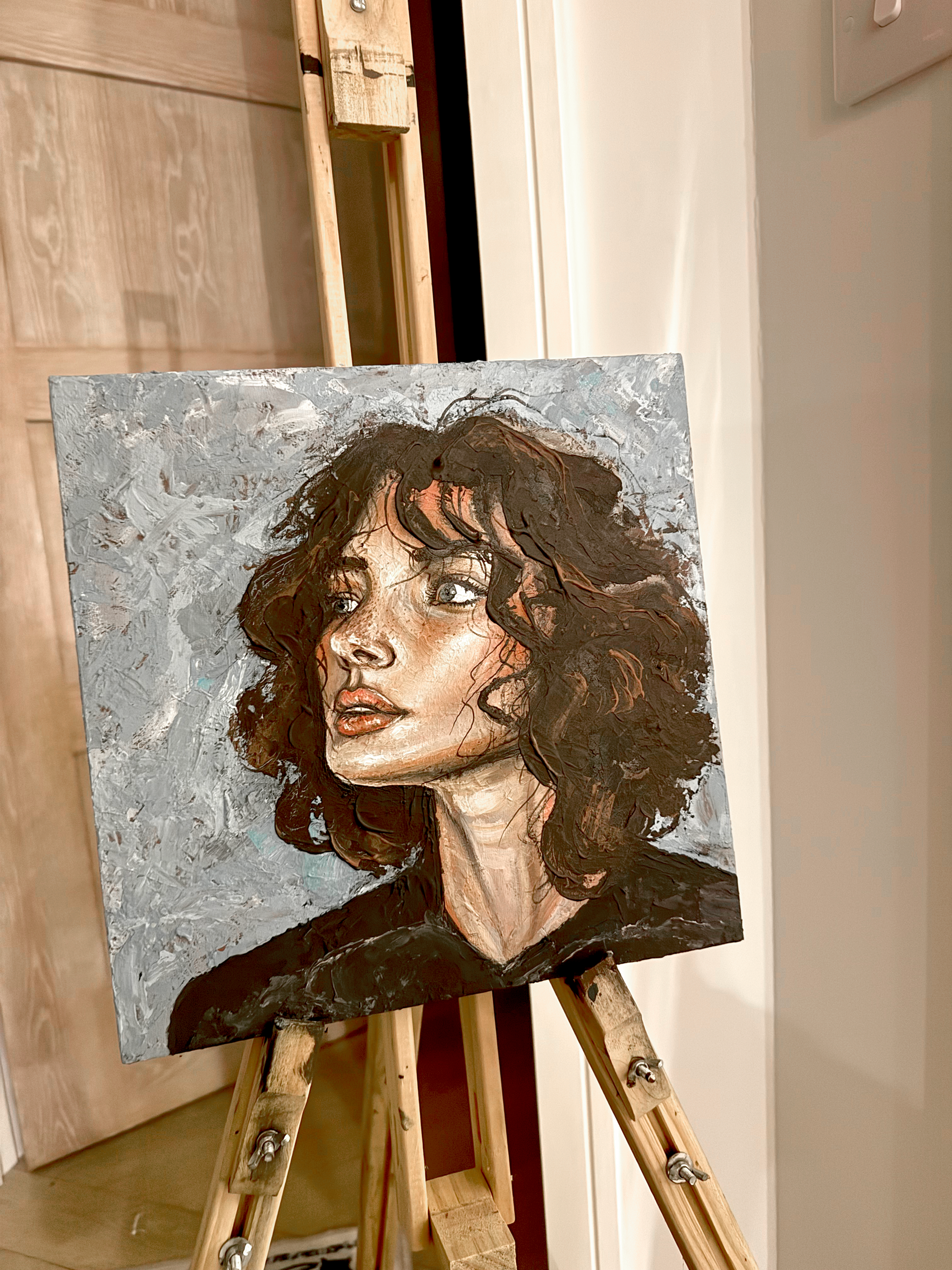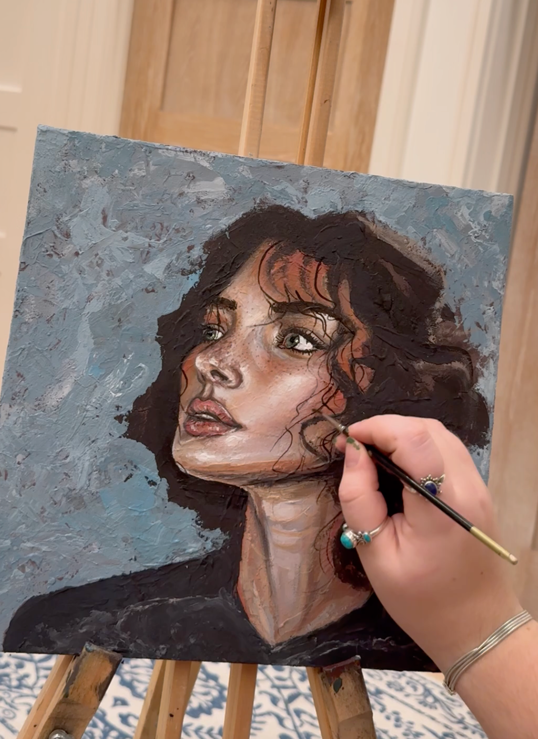 A portrait study in acrylic and mixed media inclusions to create texture.